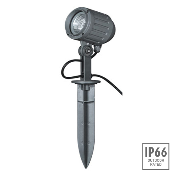 Garden LED Focus Lights, with 10W COB LED, 25⁰ Beam & housing color options. 3000K/6000K CCT, ABS Spike & input voltage options.