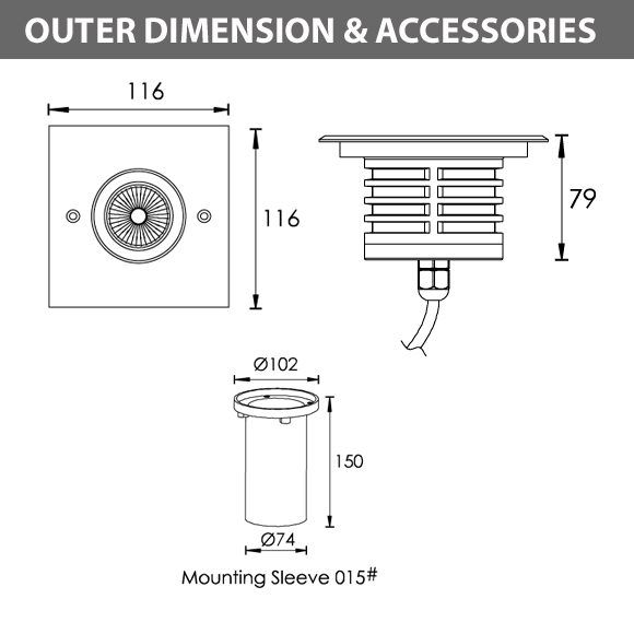 Outdoor LED Inground COB Light - R2CDS0126 - Diamension