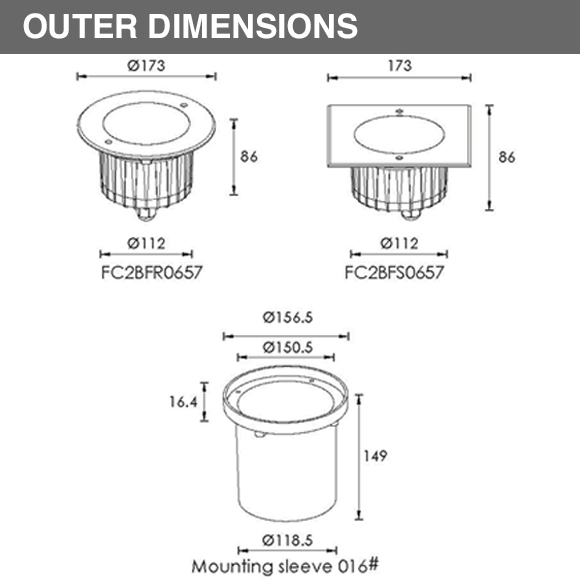 LED Inground Light Dimension FC2BFR0657 | FC2BFR0657