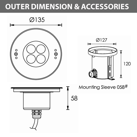 Recessed LED Swimming Pool Light - B4X0457 - Diamension